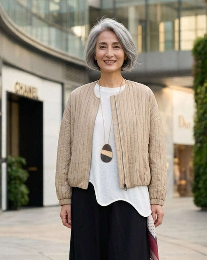 Casual comfort meets sleek style. This soft quilted jacket features a blouson hem, side pockets, and a zipper closure for an effortlessly cool, modern look.