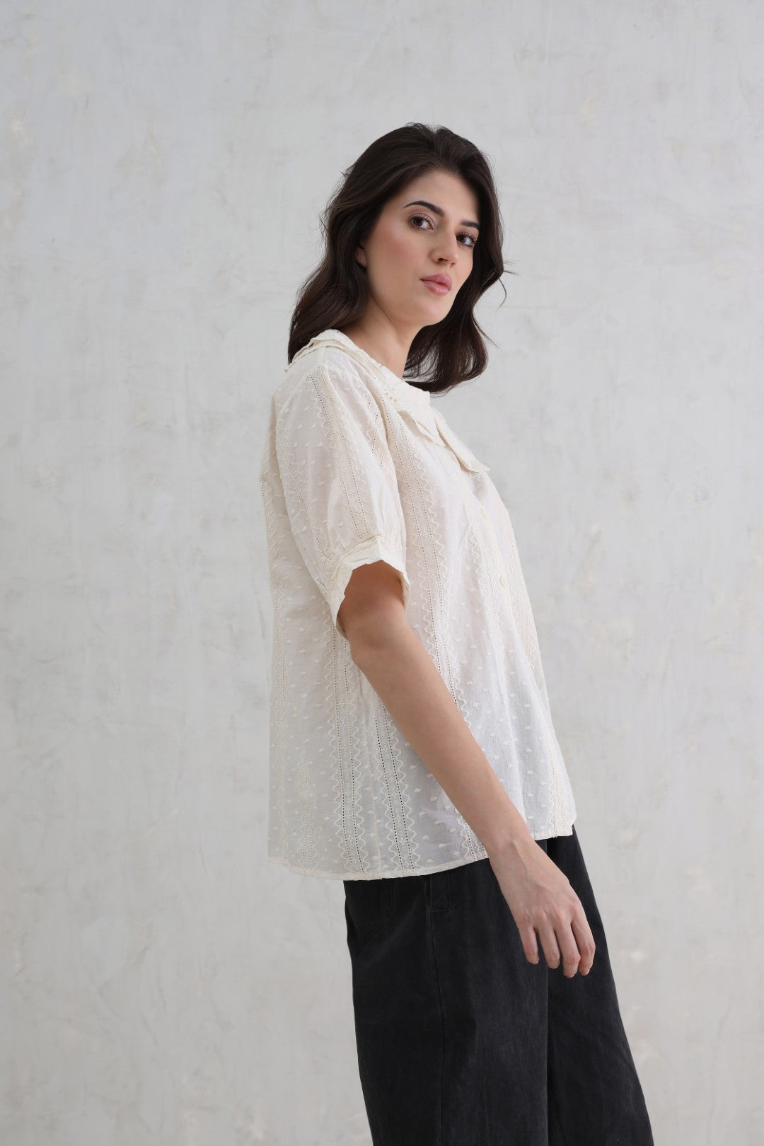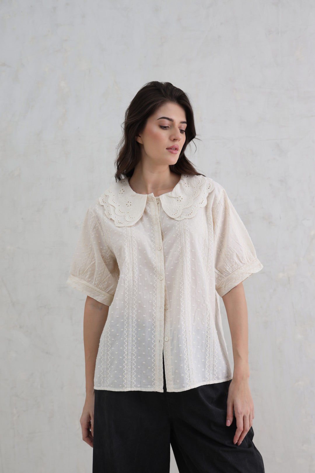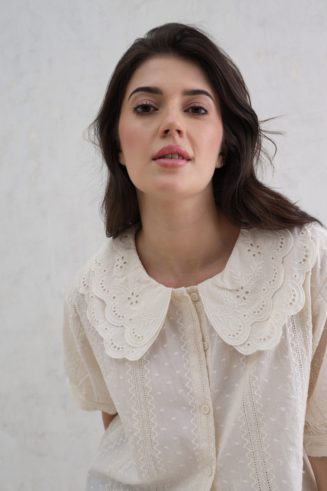 Schiffli Collar Top (20% Off Auto Applied On Add to Cart)
