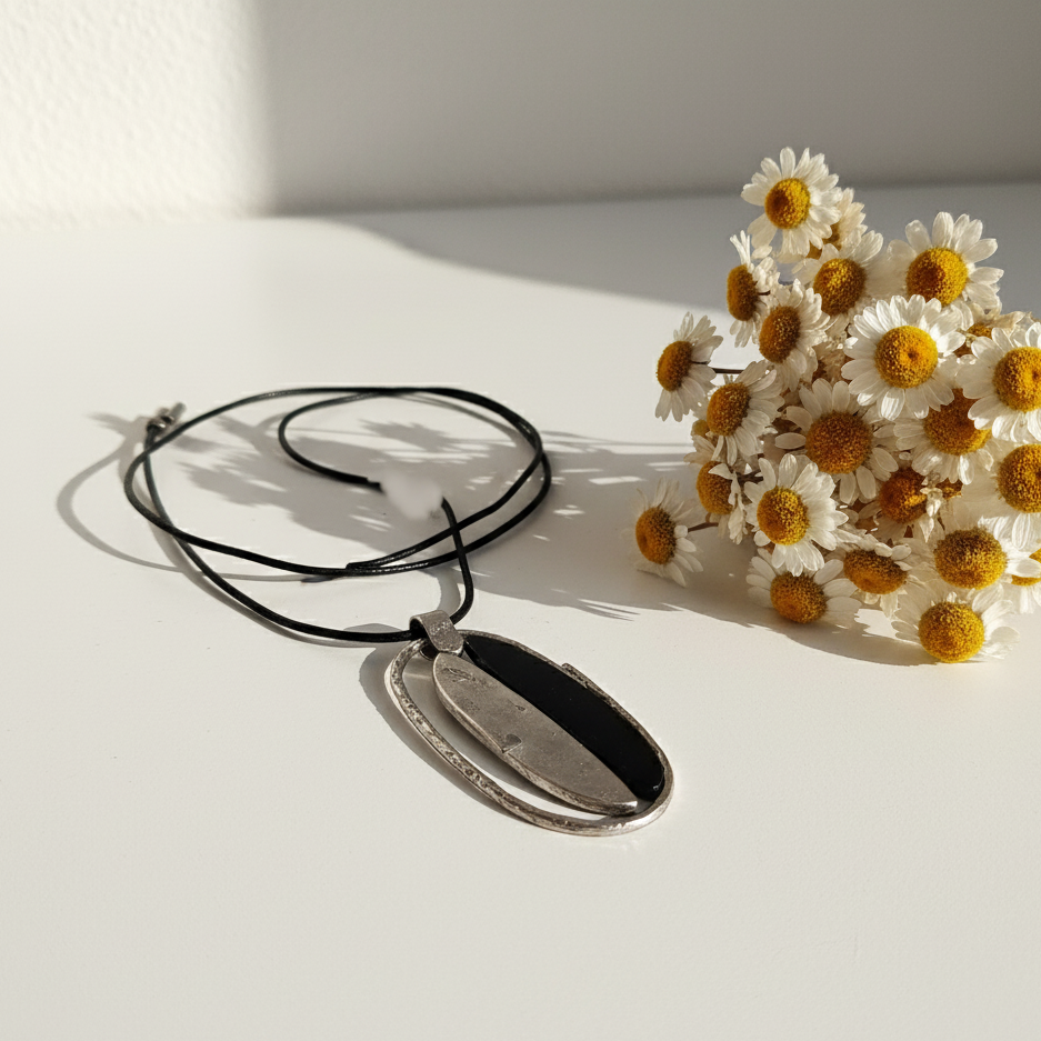 Shadow Alloy delivers a clean, modern edge with its bold black-and-metal design. Minimal yet impactful, this statement necklace brings an industrial-chic vibe that instantly elevates any look. Sleek, versatile, and effortlessly cool — it’s the perfect piece for polished, urban style.