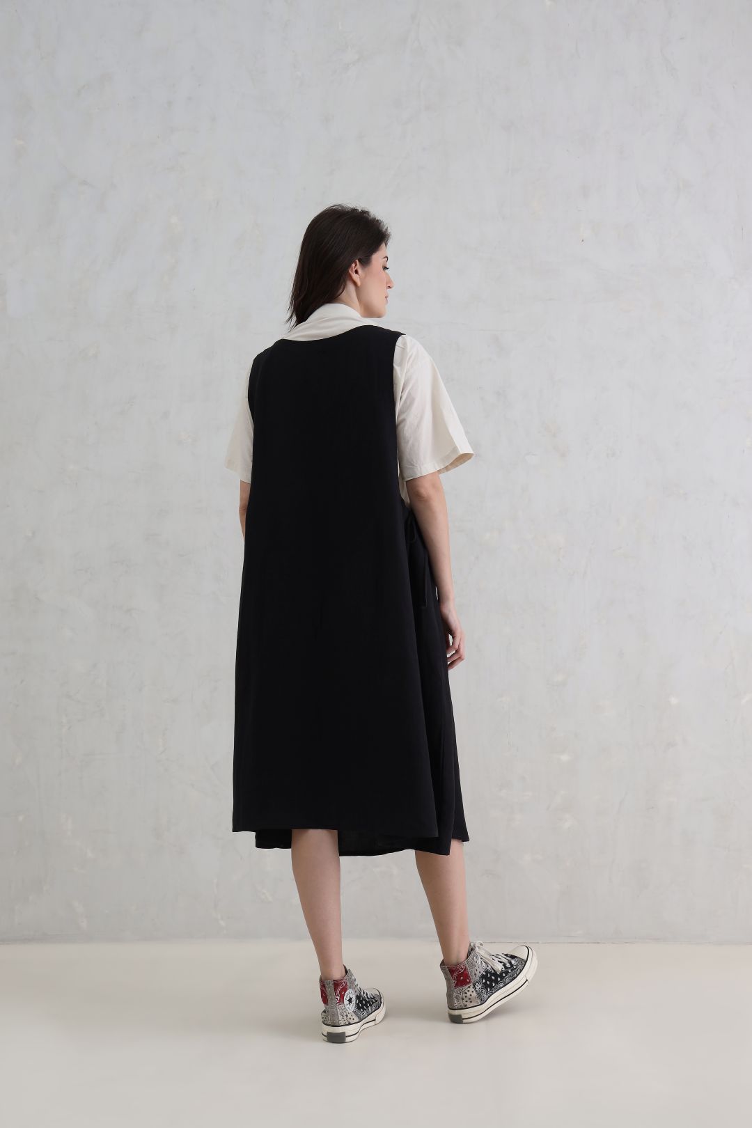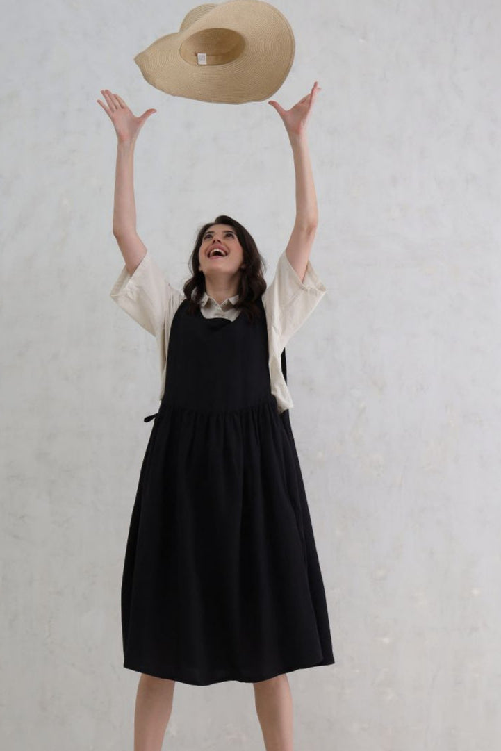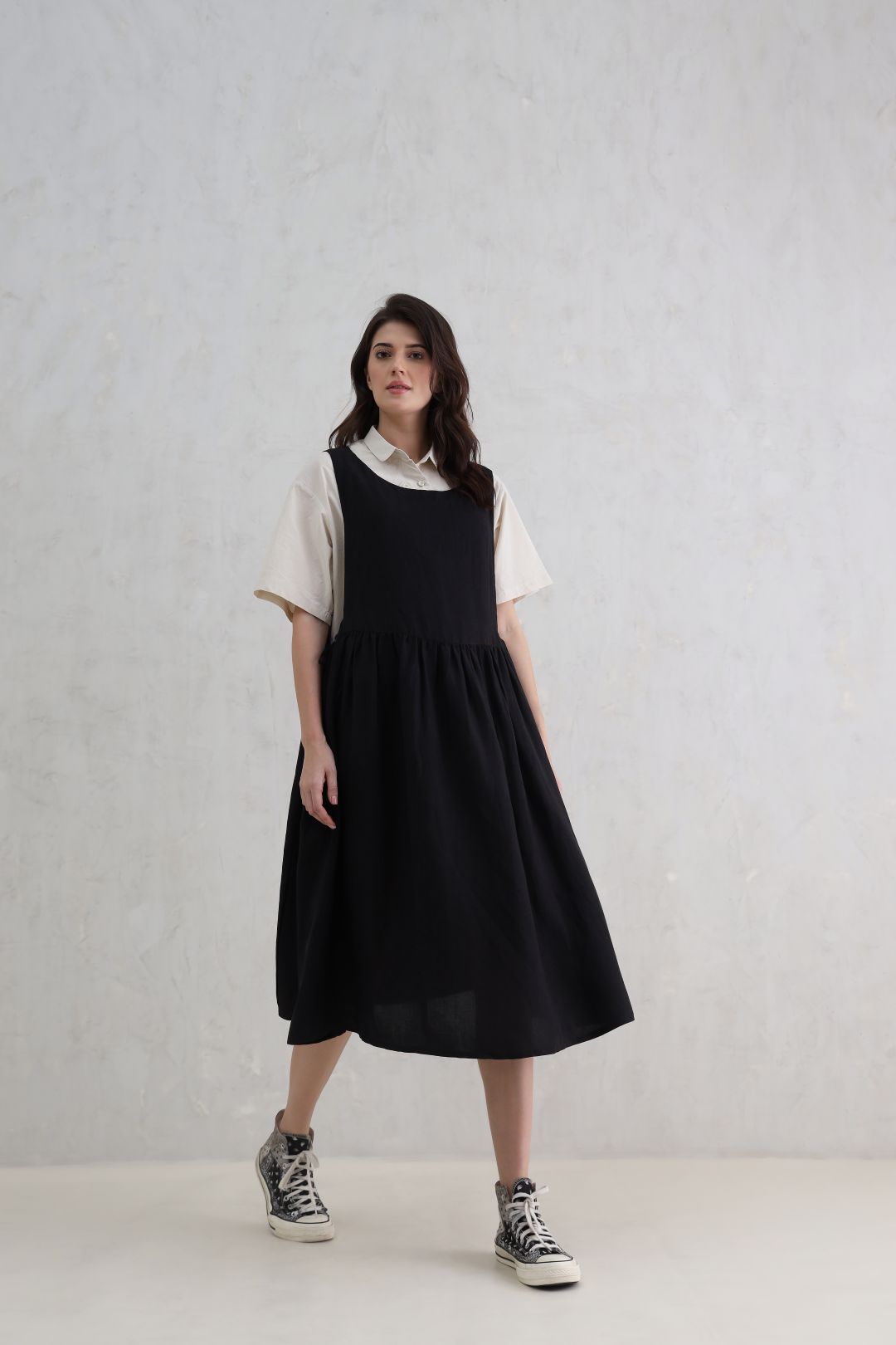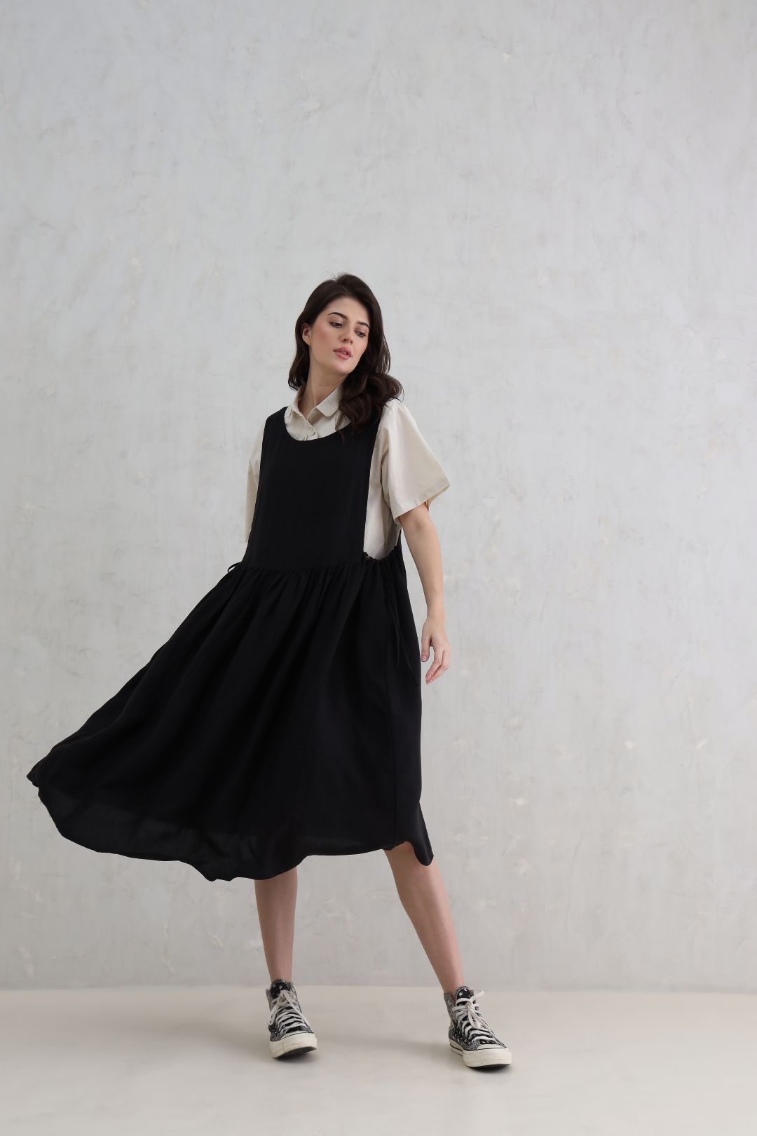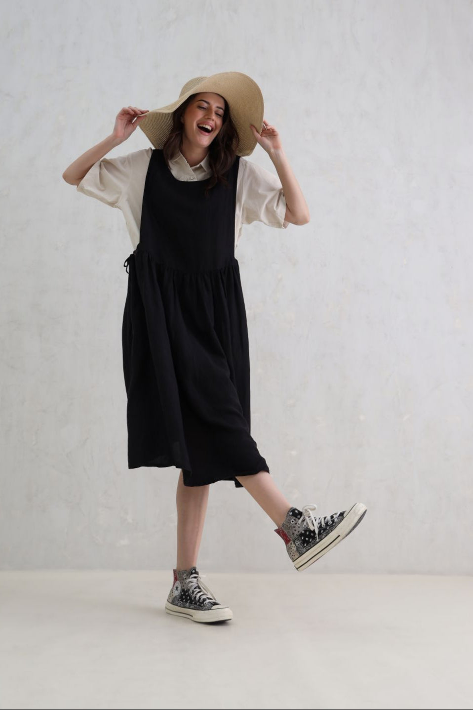This dungaree dress blends casual charm with functional style, featuring an adjustable waistline for a customizable fit. Perfect for layering over tops or dresses, it offers versatility and ease. With its relaxed silhouette and effortless appeal, it’s a go-to piece for a laid-back yet fashion-forward look