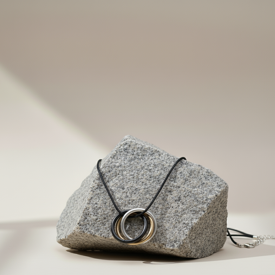 Unity of Chaos turns scattered design into bold self-expression. With its fused rings and industrial edge, this statement necklace embraces imperfection and transforms it into art. Modern, rebellious, and effortlessly striking — it adds fearless character to any outfit.