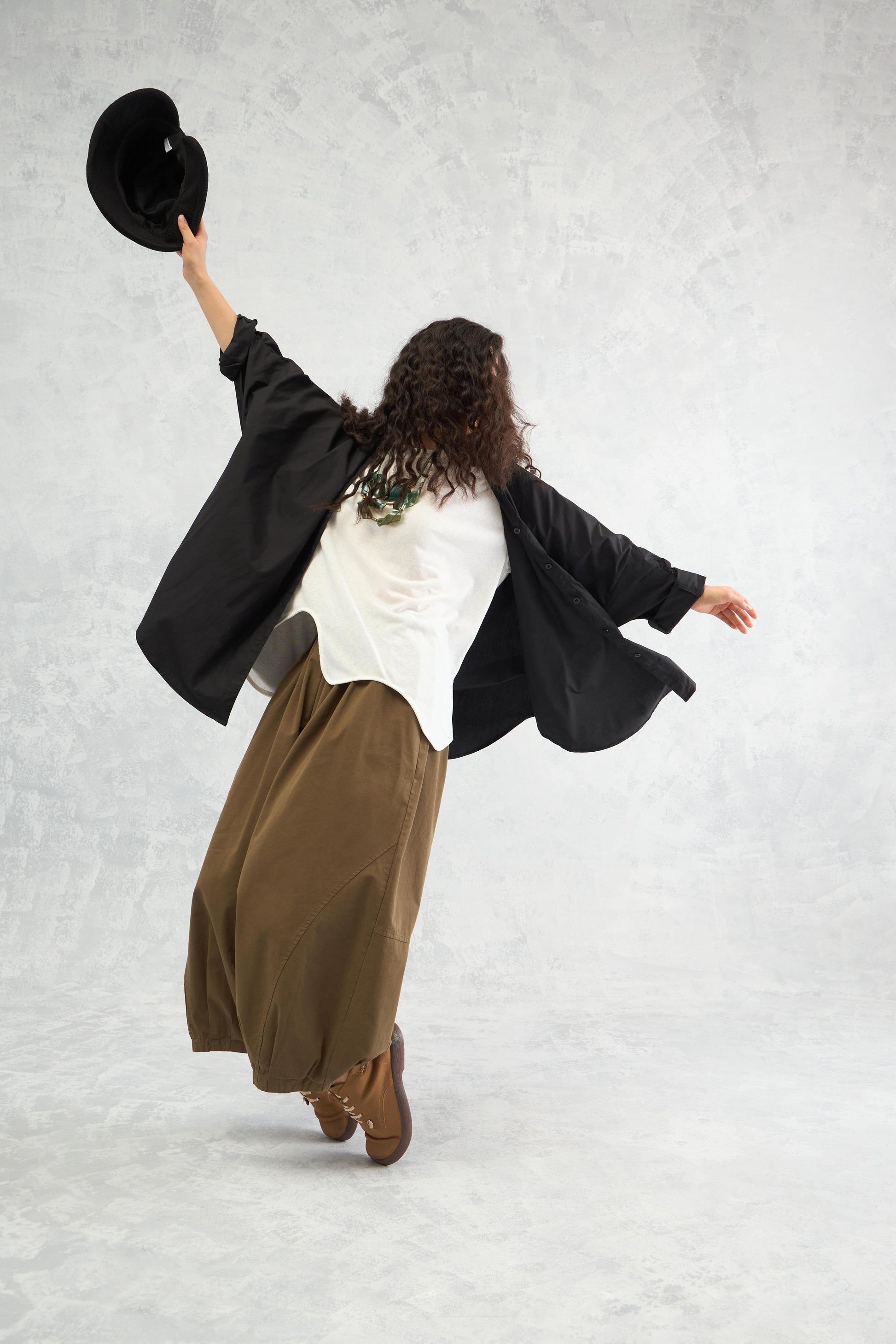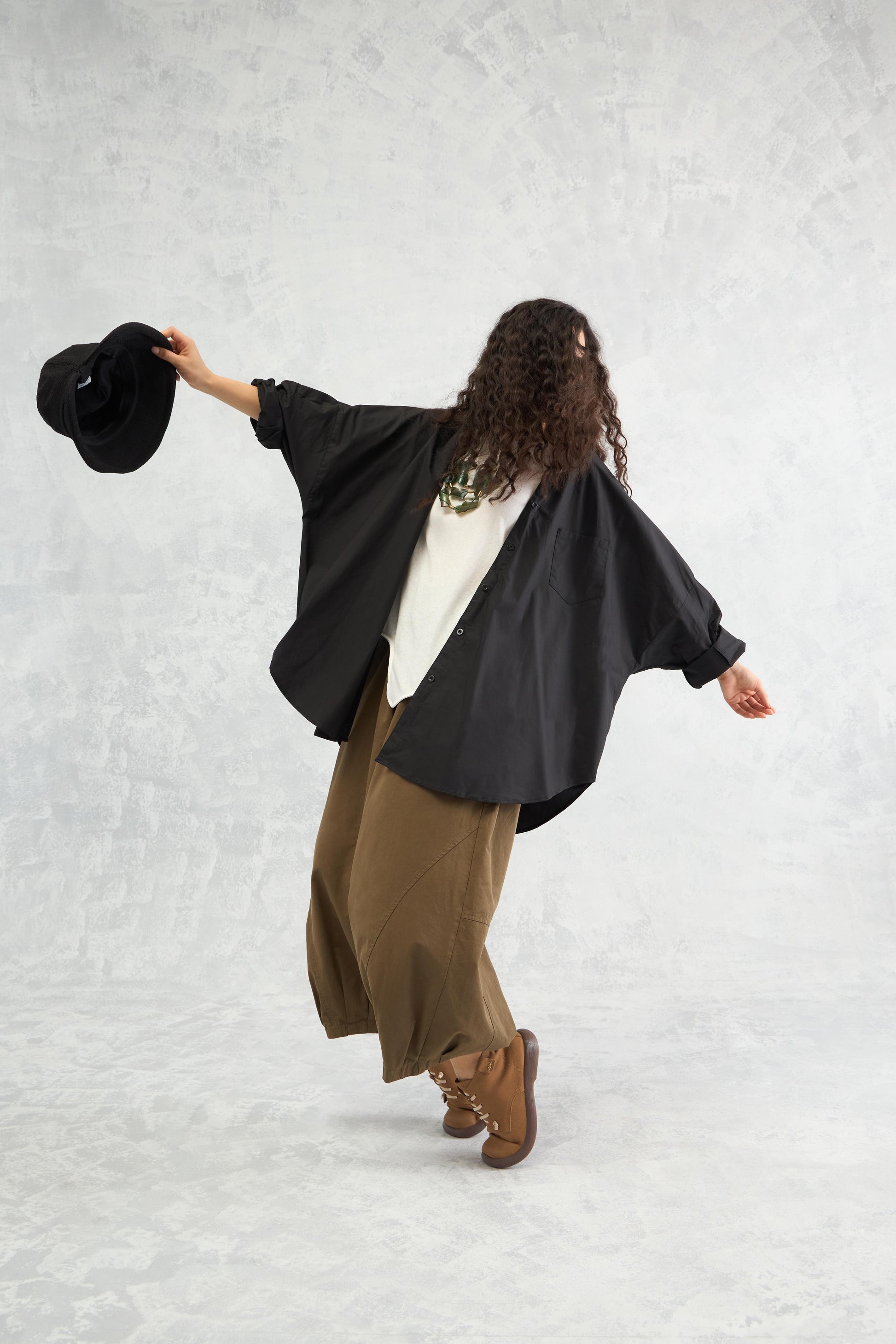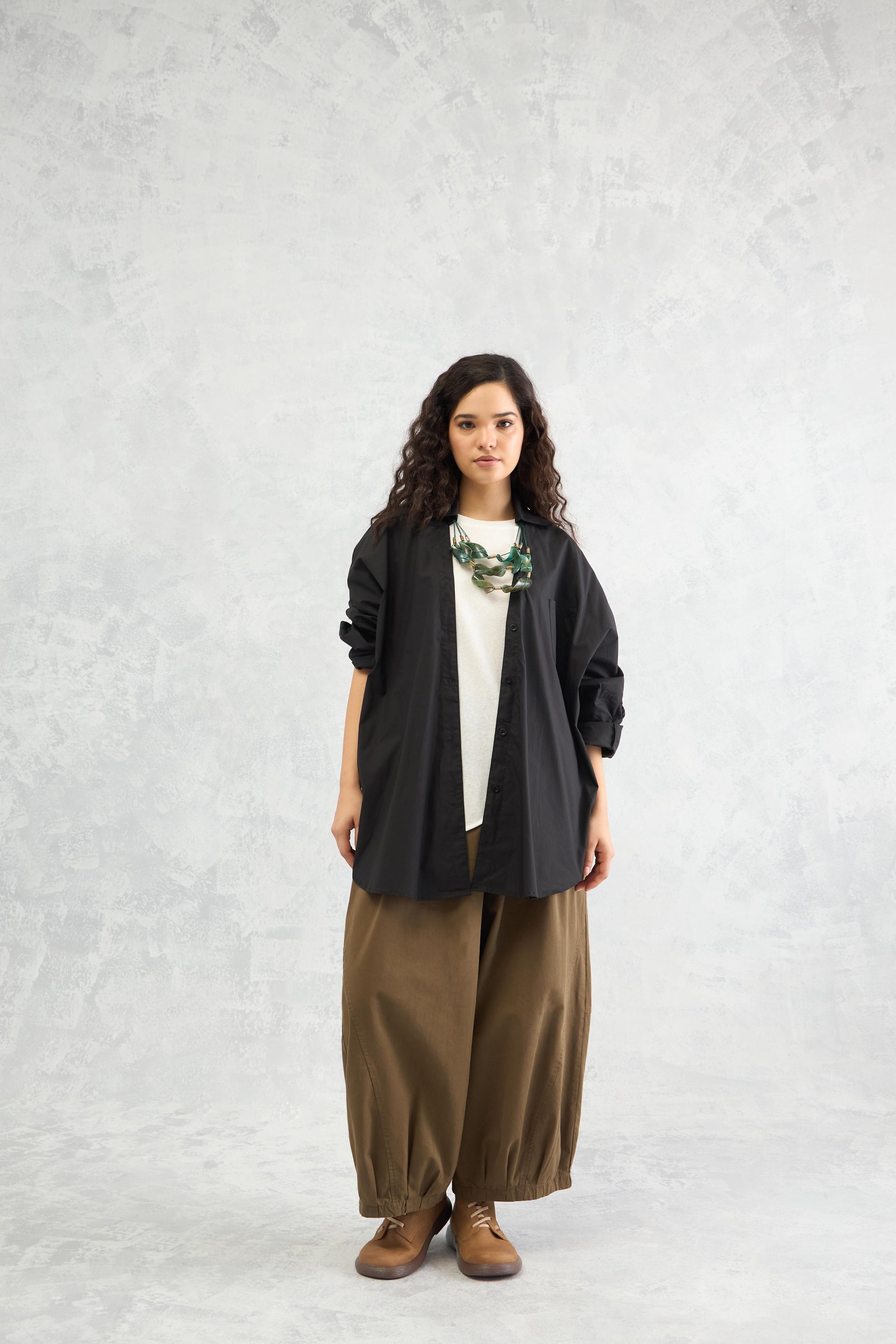 A boxy oversized crisp cotton shirt designed with waist volume to create a bold, dramatic silhouette while keeping the look effortless and modern.